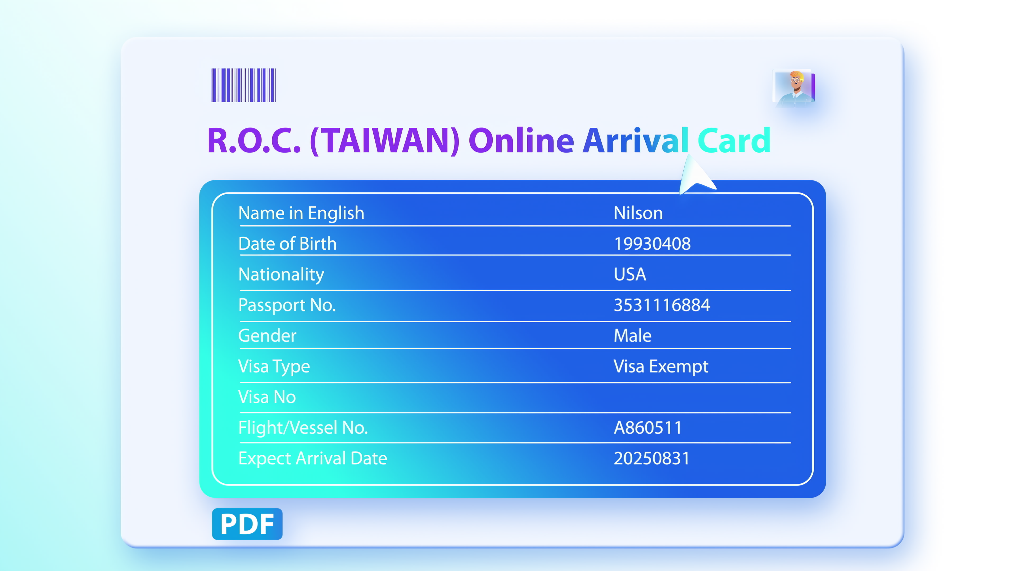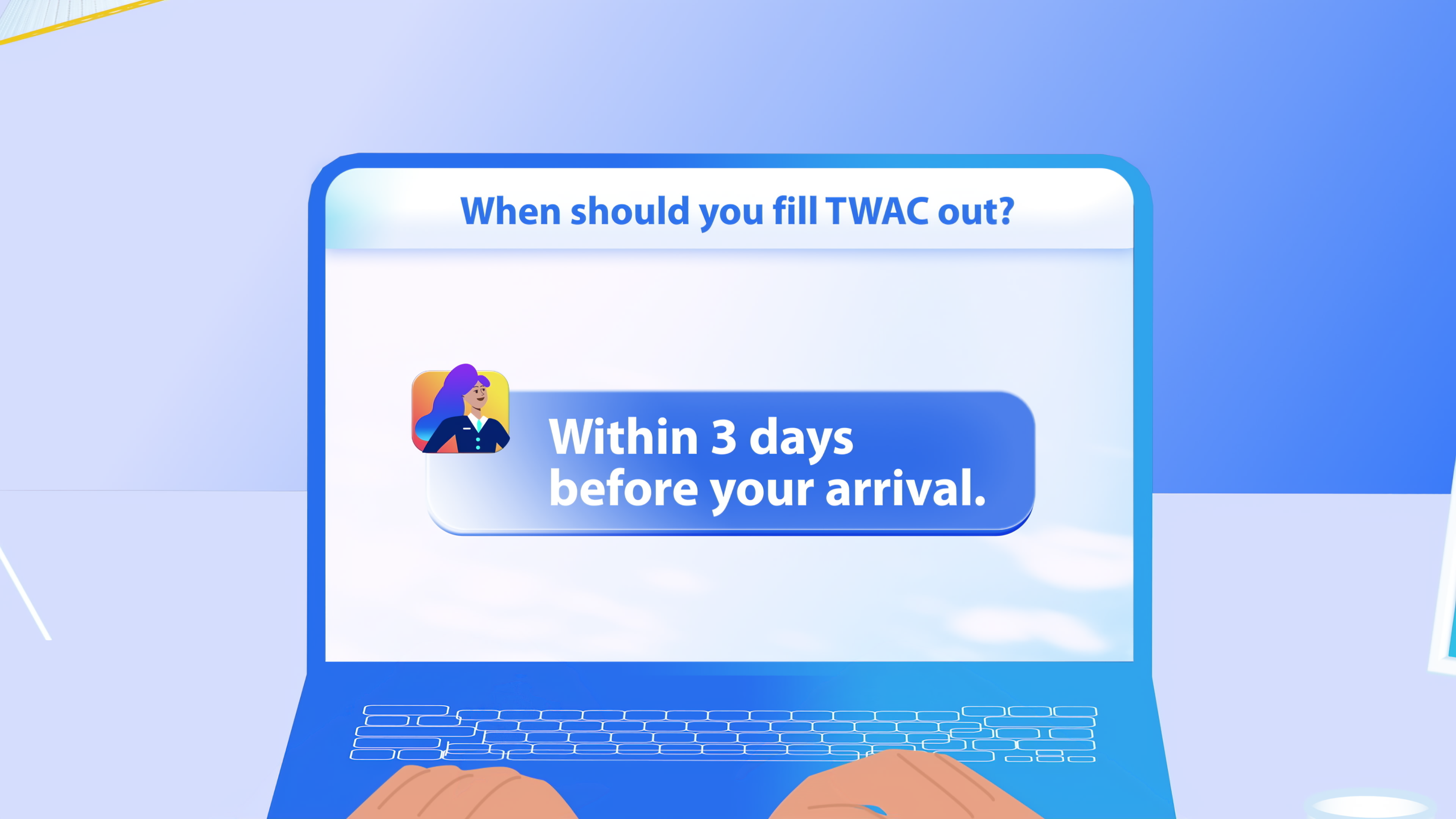 TWAC 入境卡宣導影片由內政部移民署委託製作,旨在以更友善的方式向旅客傳達台灣入境卡的使用方式。影片以明快的節奏、流暢的過場與具親和力的角色設計,將原本繁瑣的流程視覺化,讓資訊更直覺、更易理解。團隊以細緻的畫面動態與清晰的視覺語言,打造出一支兼具資訊性與觀賞性的公共溝通影片。
